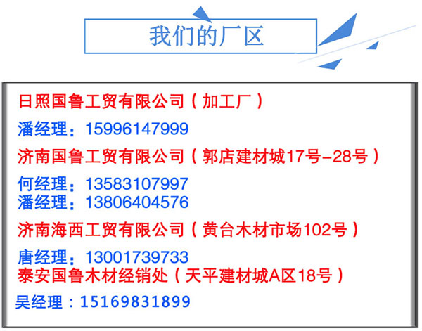 日照国鲁工贸有限公司经营范围有木材加工、销售;模具加工、销售;塑胶制品、五金、钢材、建材(不含危险化学品)、包装箱、瓷砖、水泥、沙石料销售;模板租赁等,主要经营木材加工、销售,公司以品质优良、技术先进、诚信经营的经营理念,依靠合理的价格体系,精湛的技术力量,与客户互惠互利,共谋发展。公司拥有完整、科学的质量管理体系,一直秉承“质量至上”的原则竭诚为新老用户提供优质服务。