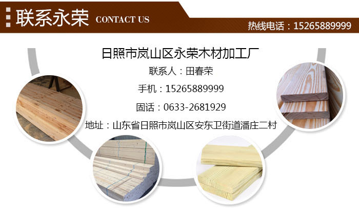 日照永荣木业有限公司,位于山东省的东南部,环境优美的日照港,地近黄海,南邻江苏徐州、江苏连云港两市。木材资源条件独厚,交通运输十分便利,公司是一家致力于原木生产、加工、批发的现代化综合企业。主要经营产品有新西兰辐射松、美国花旗松、美国铁杉松木、云杉松木、俄罗斯白松、樟子松、澳松等多种建筑木材,拥有充足的货源和完善的加工设备,可较大限度保障客户的工程采购量,保障供货的及时性。 公司成立于2009年,地处山东省原木疏散基地。公司从事木材资源供应和国内外定尺加工企业。公司配备大型的木材加工生产设备数台,常年备有各种树种的木方供客户选择!主要进口分销工地建筑用木材、房屋装饰用材、居家家具用材等。