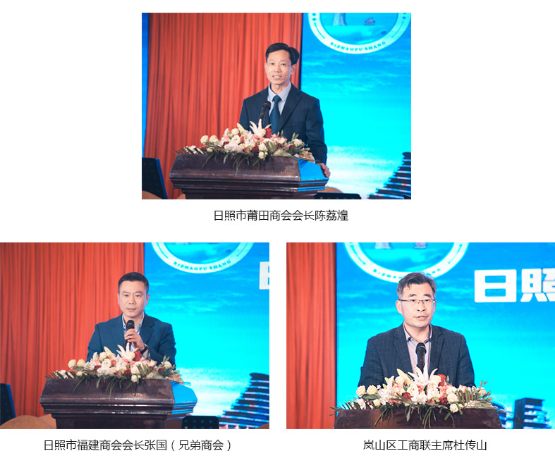日照市莆田商会会长陈荔煌、日照市福建商会(兄弟商会)会长张国、日照市岚山区工商联主席杜传山等领导为此次日照莆商九周年年会盛典进行了致辞。